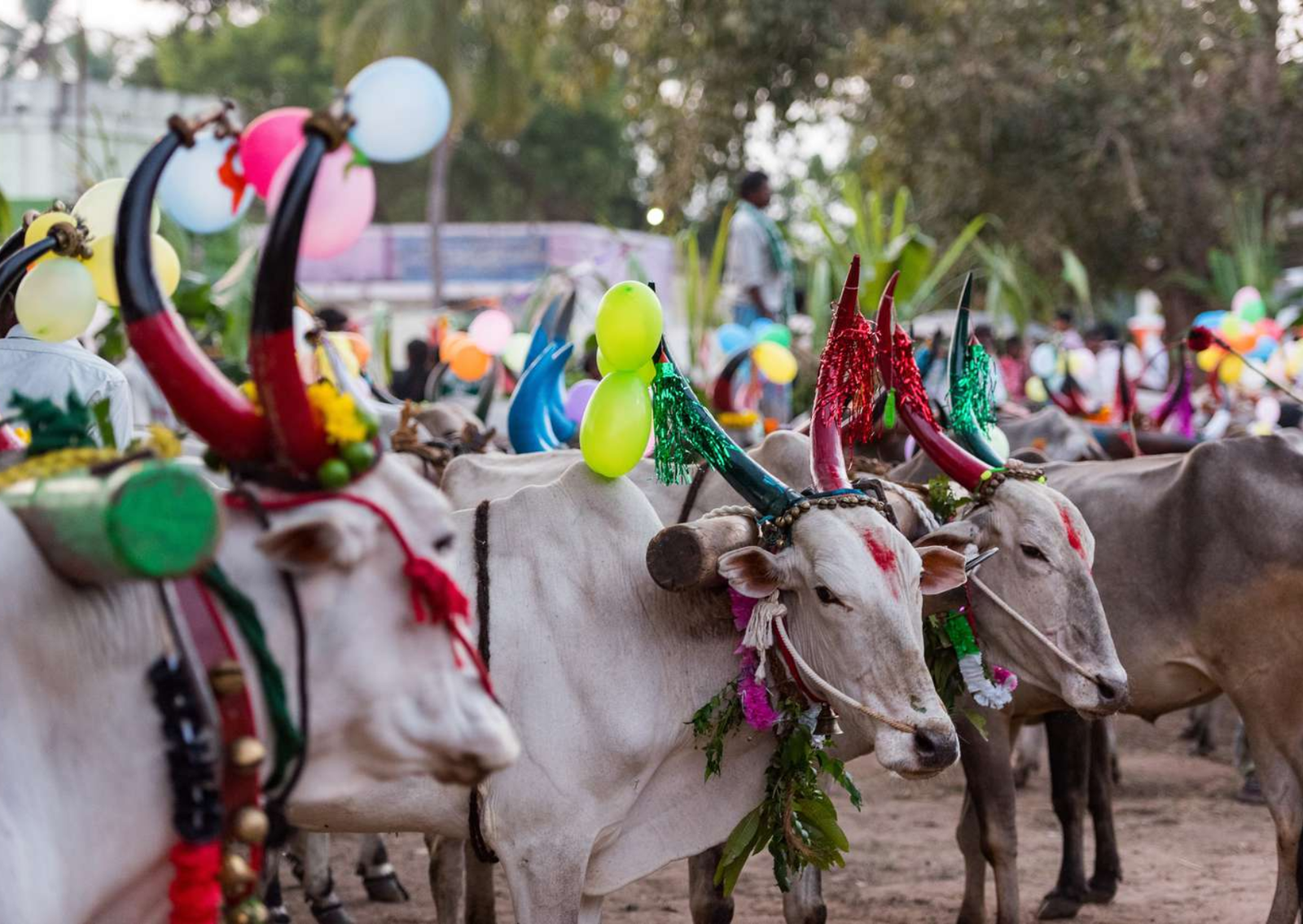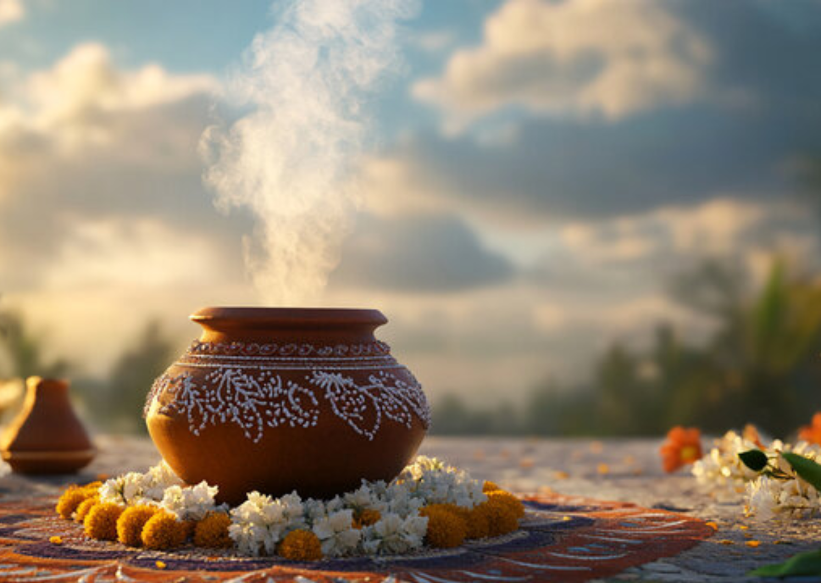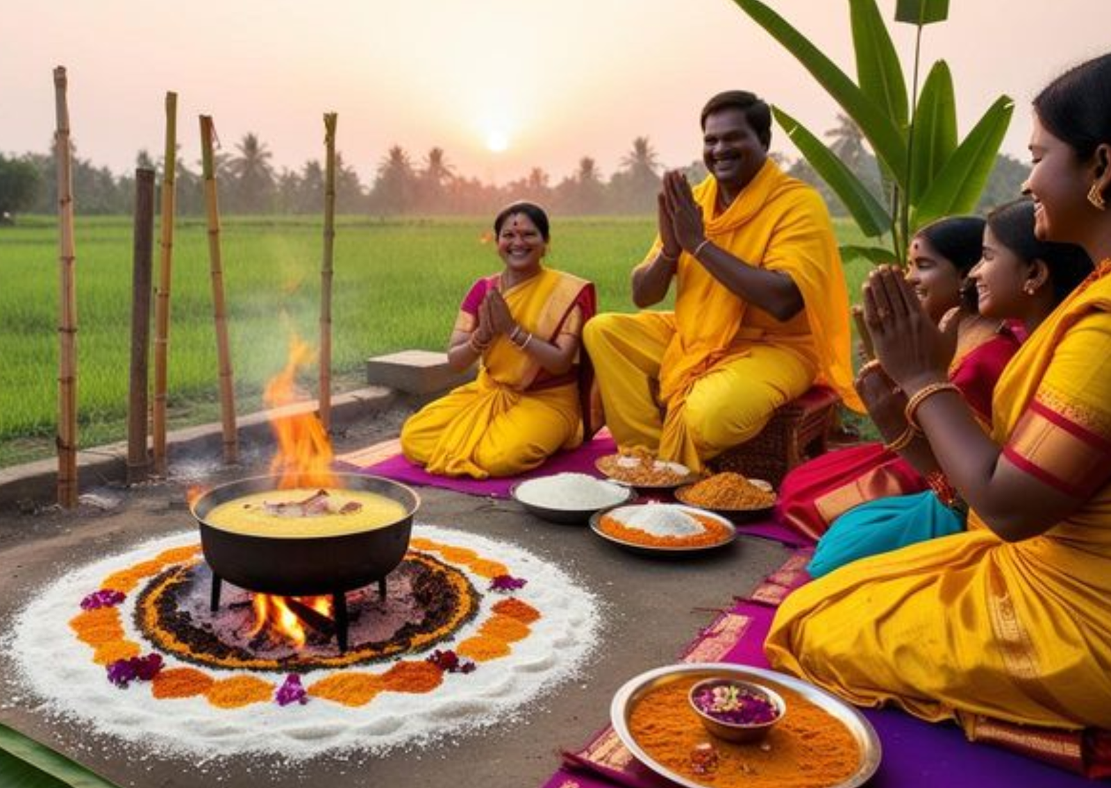 Pongal marks harvest gratitude in Tamil Nadu, offering sweet rice, kolam, Sun God worship, cattle blessings, village feasts, joy, and unity